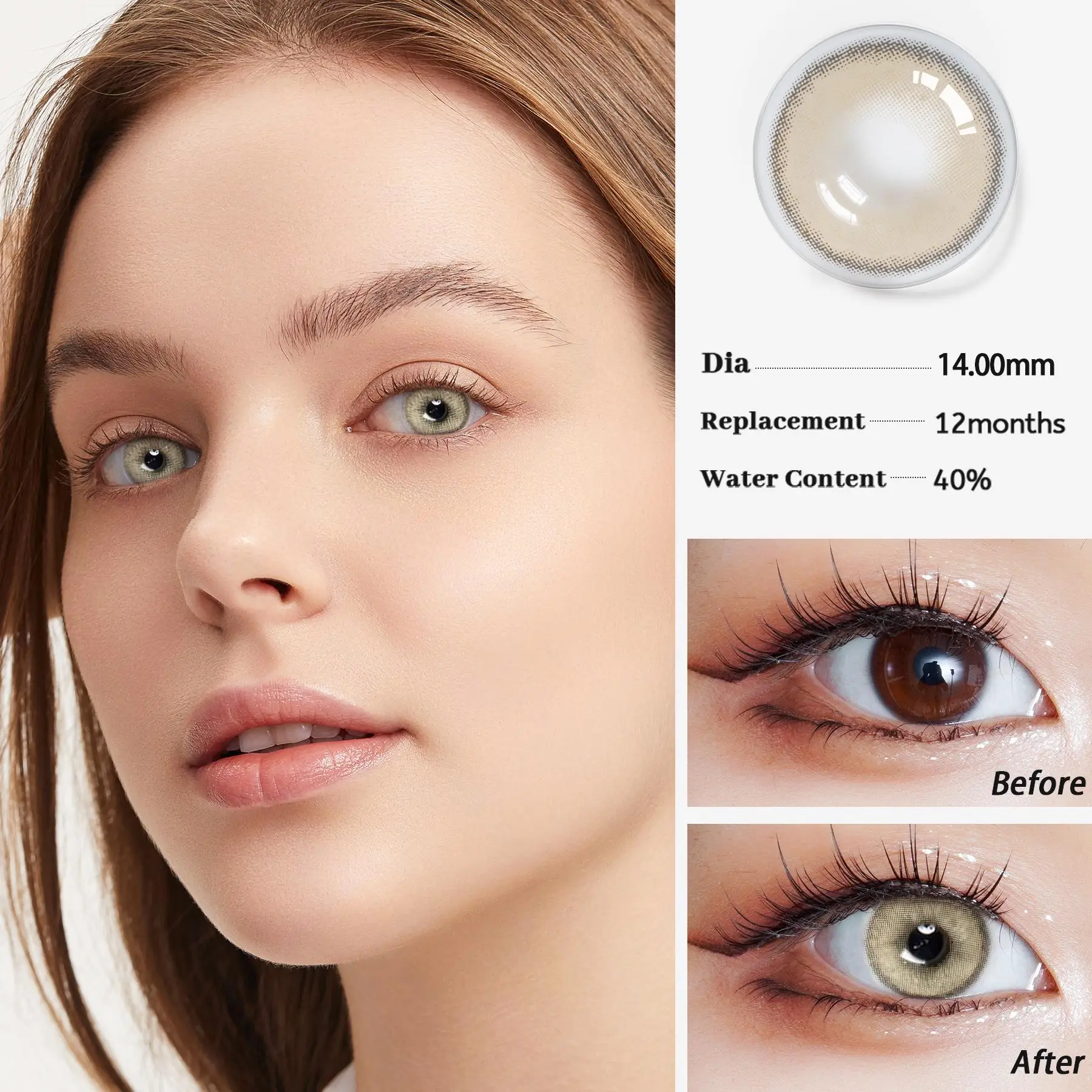 Ideal for fashion-forward styling and statement makeup, Sorayama Gray lenses deliver striking visual impact while maintaining balanced blending with the natural eye color. Designed for comfort and durability, they are wearable for up to 12 hours a day and designed to last up to 12 months with proper care.