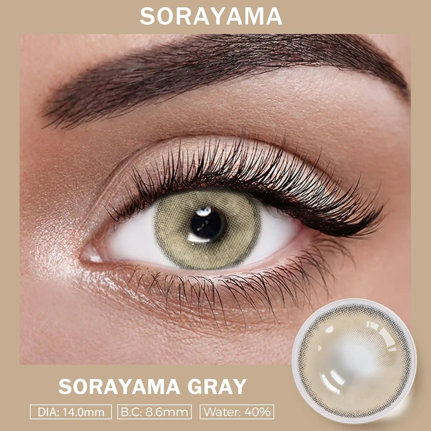 Sorayama Gray contact lenses by SK feature a refined gray tone inspired by modern, futuristic aesthetics. This shade enhances the eyes with crisp definition and a smooth metallic-inspired finish, creating a bold yet elegant look.