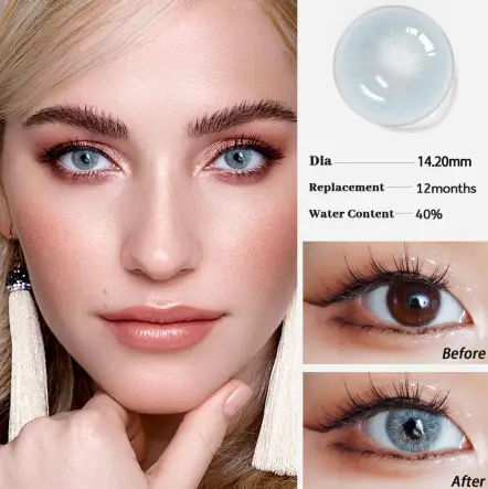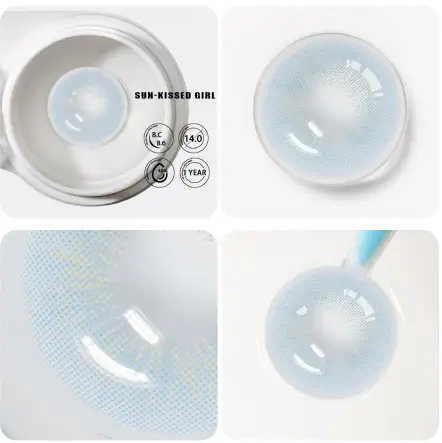Sun Kissed Tiffany contact lenses by SK feature a bright, refreshing blend of tiffany blue and soft green tones inspired by sunlit elegance. This shade adds a luminous and youthful touch to the eyes, creating a fresh look that stands out while remaining beautifully balanced.